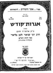 שער החלק הראשון של הספר- 'אגרות קודש' של אדמו"ר הזקן