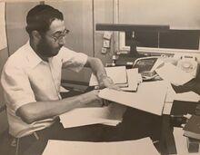 הרב רסקין בצעירותו, במהלך עבודתו על ההנחות
