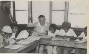 הרב יונג לומד עם תלמידי ישיבת תומכי תמימים לוד במסגרת ביקורו בארץ הקודש מטעם הג'וינט
