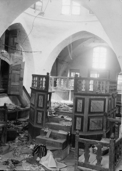 בית כנסת מנוחה רחל לאחר שחולל על ידי הפורעים בחברון בעת המאורעות