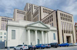 בית הכנסת שושנת הזהב על רקע מרכז מנורה שלו הוא מסונף