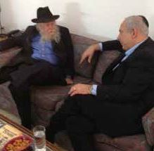 מר בנימין נתניהו מאזין לתקיעת שופר על ידי הרב מנחם מענדל בליניצקי