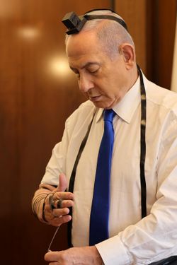 ביבי עם טלית ותפילין (תשפ"ה) - לאחר מכן הוא צפה בוידאו שלו עובר אצל הרבי