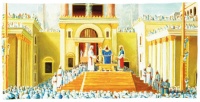 הדמיה של המלך קורא בתורה בבית המקדש במעמד קיום מצוות הקהל