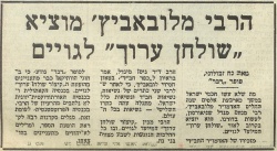 עיתון 'דבר', תשמ"ה: הרבי מוציא "שולחן ערוך" לגויים