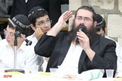 הרב שפרינגר בהתוועדות בזאל הישיבה בצפת