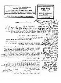דו"ח שנתן הרב דייטש לרבי אודות הכולל, בצד הגליון הביע הרבי את רצונו שבכולל האברכים המנוהל על ידי המזכירות ילמדו מכולל צמח צדק כיצד לפעול ולנהל את הכולל