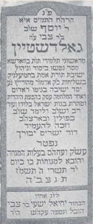 הרב יוסף גולדשטיין (תרס"ח - י"ד תשרי תשמ"ז) היה שוחט ובודק בעיירה חמעלניק ומייסד סניף ישיבת תומכי תמימים המקומית, ולאחר הגירתו לארצות הברית כיהן כרב בית הכנסת נוסח האר"י בשכונת איסט פלטבוש.
