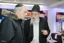 הרב יעקב שפריצער (מימין) ביחד עם ידידו הנגיד החסידי הרב יוסי פופאק