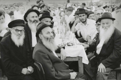 ר' יצחק מאיר גרינברג (קיצוני מימין) בהתוועדות בכפר חב"ד