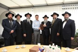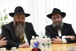 הרב פנחס וישצקי (קיצוני מימין) בפגישה עם נשיא אוקראינה היהודי מר ולדימיר זלנסקי (במרכז)