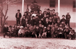 ישיבת הבוכרים בשנותיה הראשונות. המבוגרים מימין לשמאל: הרב ליפא קליין מזכיר ישיבת הבוכרים, המחנכים: ר' הרשל לרנר, הרב אבא דוד גורביץ ומנהל ישיבת הבוכרים הרב בורק'ה שיף.