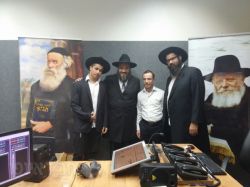 הרב ישראליק שפרינגר (מימין) בהתוועדות לכבוד ח"י אלול ברדיו קול ברמה. תשע"ד
