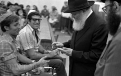 הרבי משוחח עם מצוייני צה"ל לאחר השיחה שנשא בפניהם