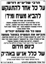 מודעה לכינוס חרום שהתקיים בכפר חב"ד בעקבות השיחה