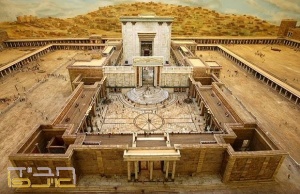 דגם של בית המקדש, בו ניתן להבחין היטב בארבעת הלשכות הגדולות שבצידי עזרת הנשים