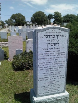 המצבה על קברו של ר' מוטל, בבית הקברות מנטיפיורי שבניו-יורק