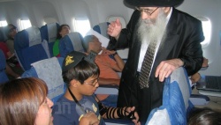 הרב אבא דוד גורביץ במהלך מבצע תפילין במטוס