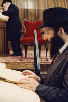 הרב לוין עולה כשליח ציבור לצד הרבי