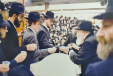 הרב משה חפר מקבל מהרבי כוס של ברכה