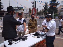 דוכן תפילין המאויש על-ידי חסידי חב"ד. מבצע תפילין ממלא חלק מסדר יומו של חסיד חב"ד בזמנו הפנוי