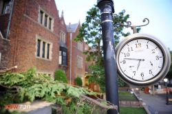 שעון בכניסה ל770. השעון מראה על זמן וסדר