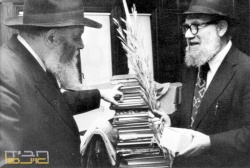הרב ניסן מינדל מקבל ארבעת המינים מהרבי