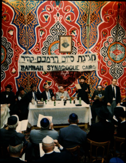הרב יוסף הכט נואם בסיום הרמב"ם בבית הכנסת במצרים