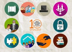 תפילין · תורה · מזוזה · צדקה · בית מלא ספרים · נש"ק · כשרות · טהרת המשפחה · חינוך · אהבת ישראל