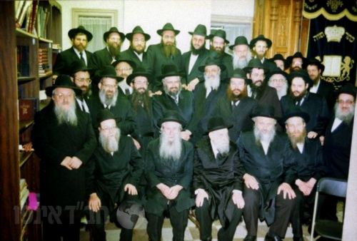 שורה ראשונה מימין לשמאל: ר' יצחק מאיר הרץ, ר' יצחק יהודה ירוסלבסקי, ר' זלמן גוראריה, ר' יצחק הנדל, ר' אברהם אזדאבא, ר' צבי יהודה פוגלמן.