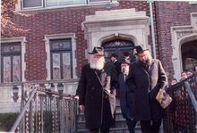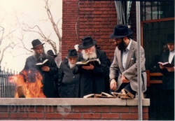 הרבי שורף את החמץ בחצר האחורית של ביתו הפרטי
