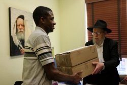 הרבי בפתח בניין ספריית חב"ד, מלווה את משלוח המצות המחולקות מטעמו בארץ הקודש