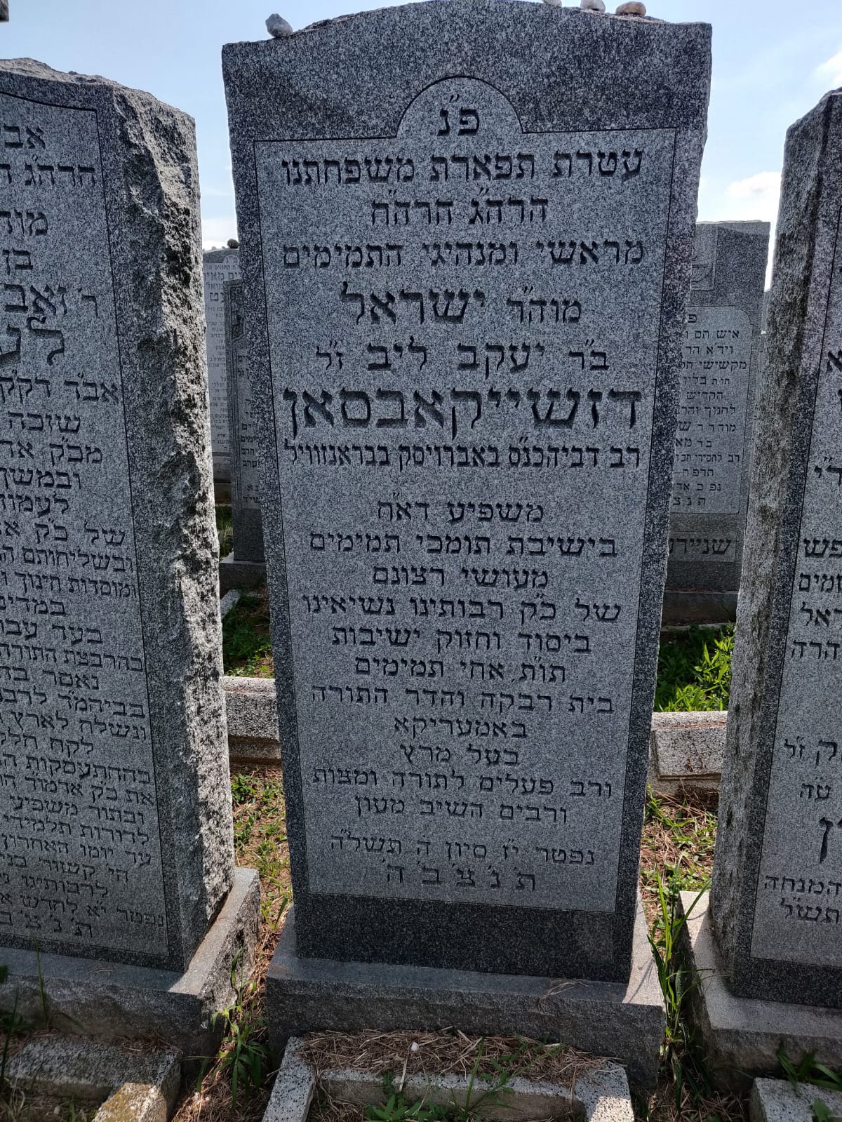 מצבת ר' ישראל דזשייקאבסאן בבית החיים מנטפיורי בקווינס.