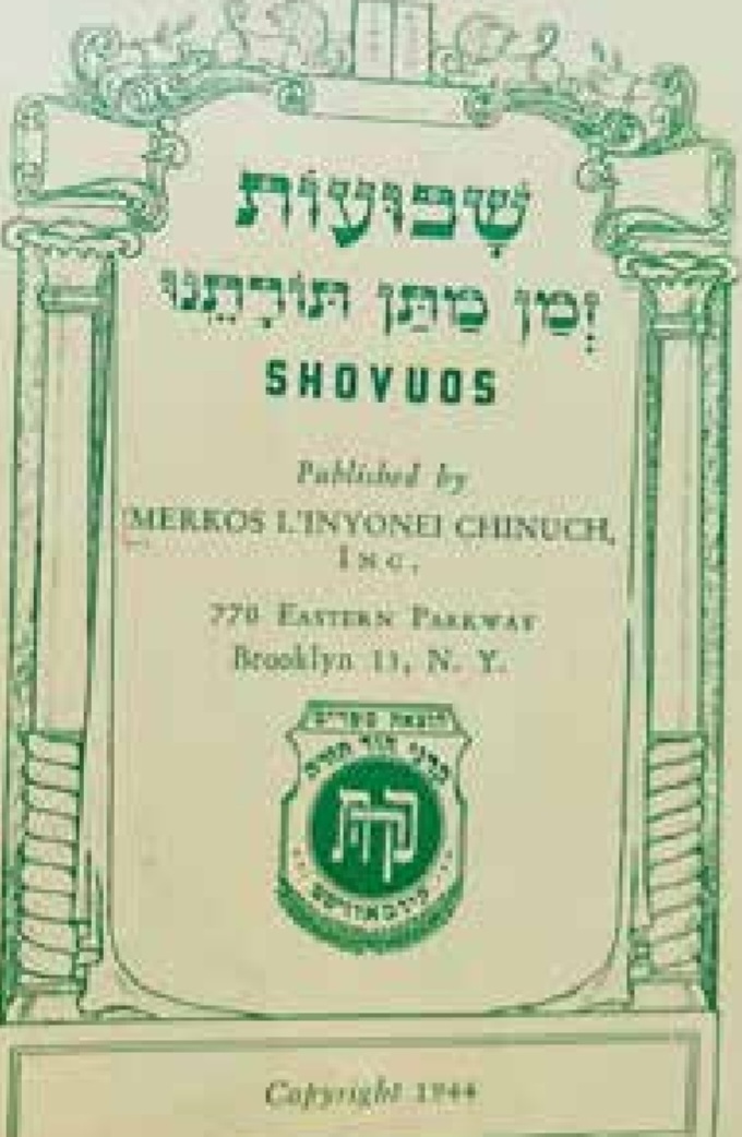 חוברת שבועות י"ל על ידי קה"ת מקור: בית הספרים הלאומי, כפר חב"ד 2010