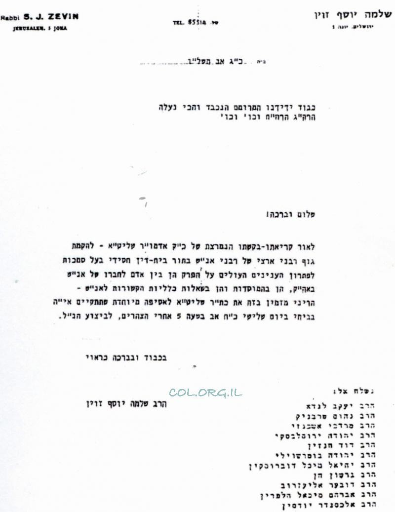 ההודעה לרבנים בדבר הקמתו של הבי"ד כהוראת הרבי