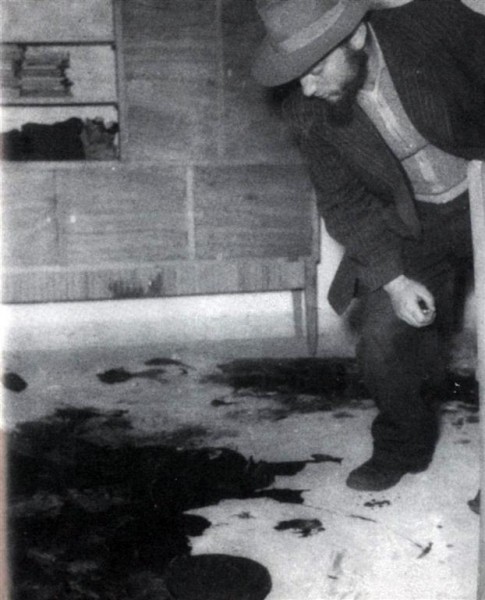 המדריך הרב מאיר פרידמן מביט בתדהמה על שלוליות הדם