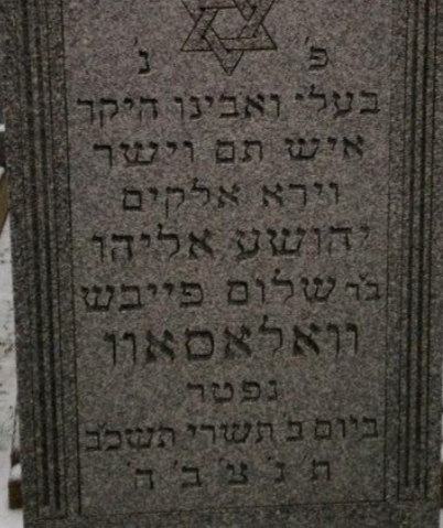 מצבת קברו של ר' יהושע אליהו וולוסוב, מונטיפיורי, ניו יורק