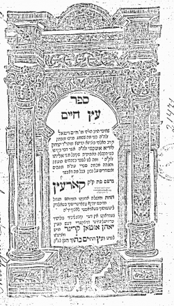 שער הספר עץ חיים בדפוס ראשון (קוריץ, תקמ"ב)
