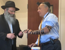 מניח תפילין לבעל חברת 'מנהטן ביר'ס'