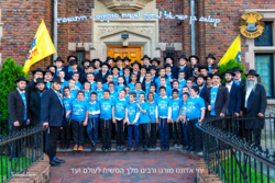 תמונה קבוצתית של הקעמפ על רקע 770 (תשפ"ד)