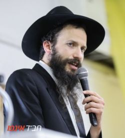 הרב ראובן בורושנסקי נואם בכינוס בישיבה