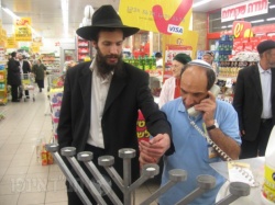 הרב בורושנסקי במהלך מבצע חנוכה בשכונת רמת אשכול בירושלים
