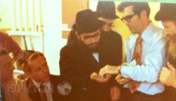 בעת מעמד פדיון הבן של אריאל רויטמן, נכד אחיו של הרבי ר' ישראל אריה לייב שניאורסון (תשל"ה)