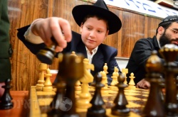 חסידים משחקים שחמט בליל ניטל בזאל הגדול ב-770
