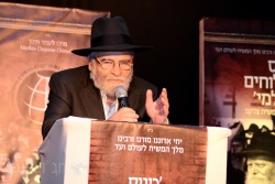 הנגיד החסידי הרב שלום בער דרייזין נואם בכינוס השלוחים העולמי בשנת תשע"ב