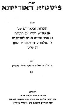 פיטטיא דאורייתא חיבורו של הרב שלום בער נוטיק