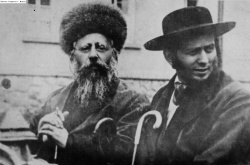 רבי שלמה הלברשטאם בצעירותו לצד אביו רבי בן ציון הלברשטאם הי"ד מבאבוב