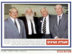 גזיר עיתון המראה את ר' שלוימק'ה עם פרזינדטי המדינה, בשבע ברכות של בתו, תשנ"ה
