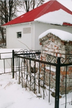 מצבתו של הרב חן הסמוכה ל'אוהל' של אדמו"ר האמצעי בניעז'ין
