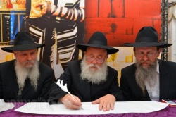 הרב גרייזמאן כותב אות בספר התורה השישי של ילדי ישראל